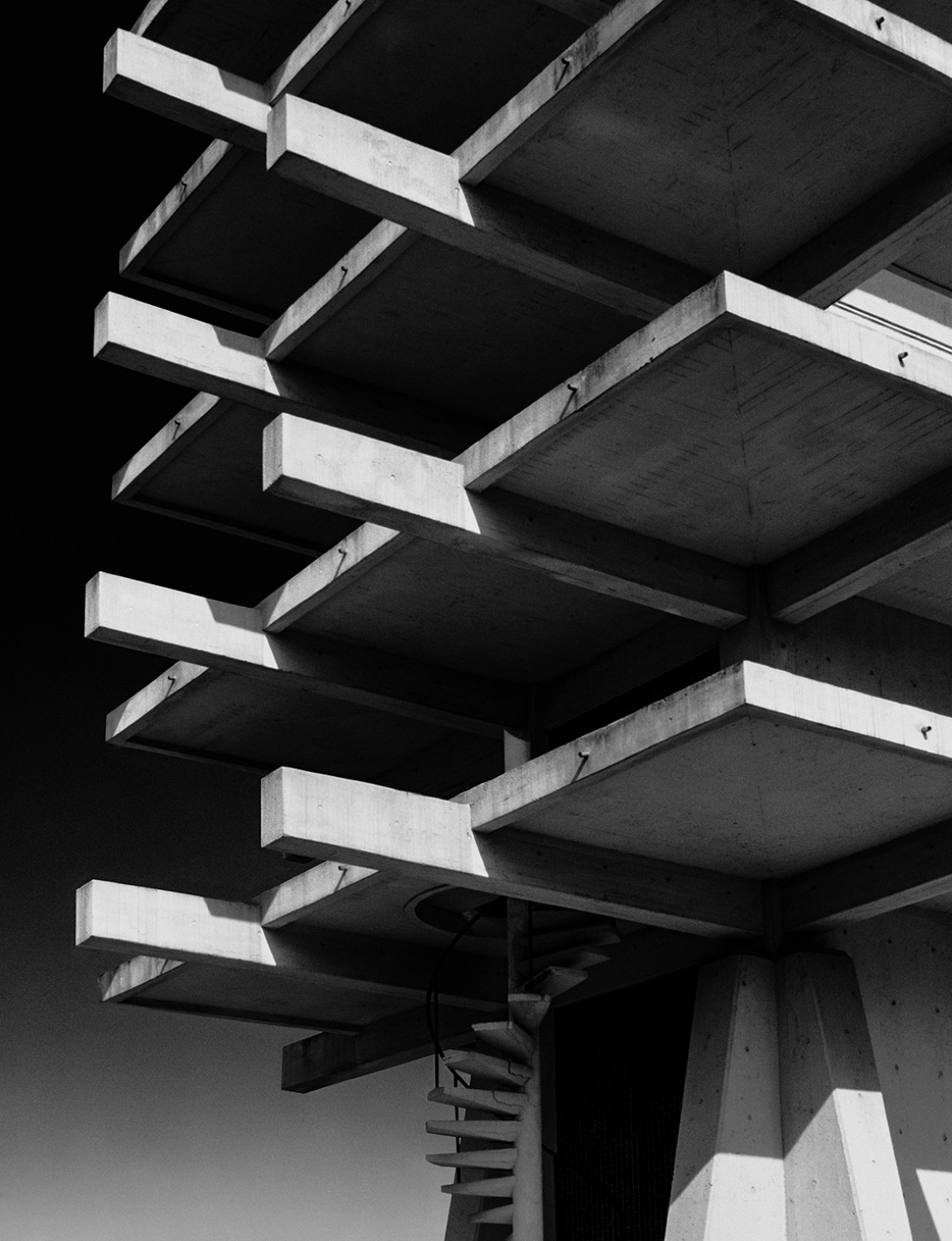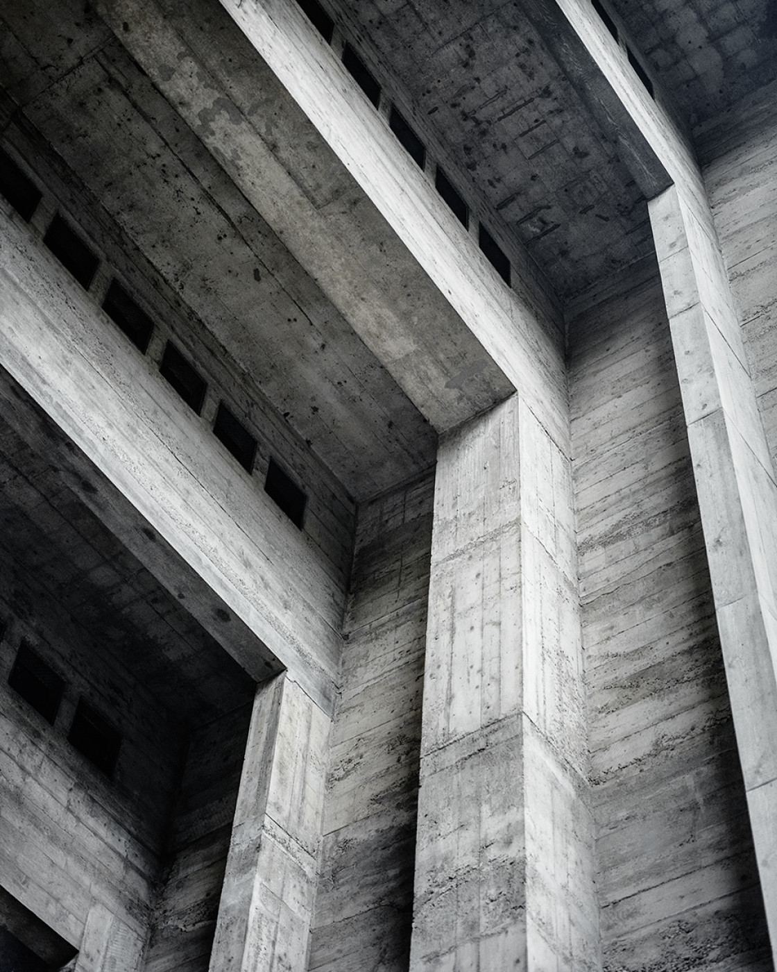 Kloss’ Bilder dabei fast surreal: Die menschenleere, verwitterte, abgenutzte oder konservierte Architektur wird zum abstrakten Skelett für modernistische Träume, Utopien und Ideale.