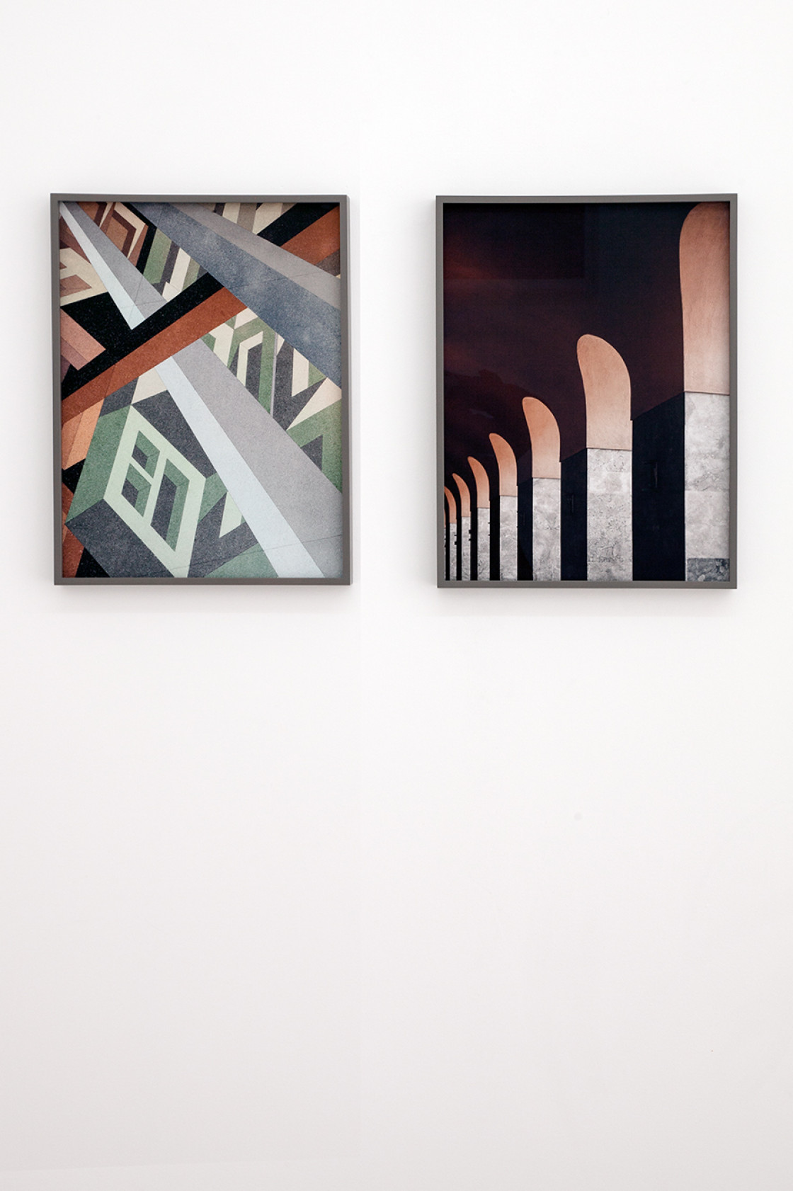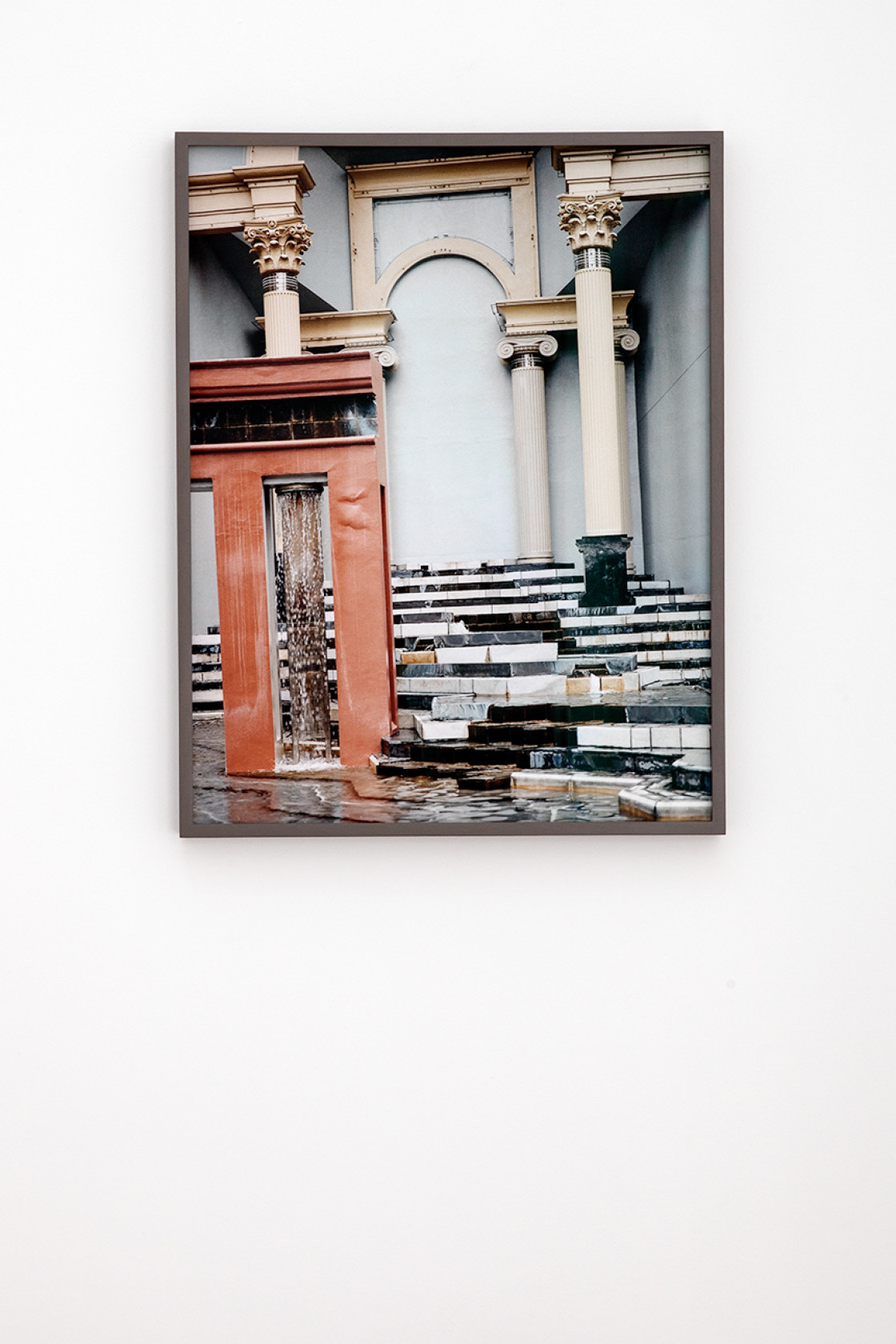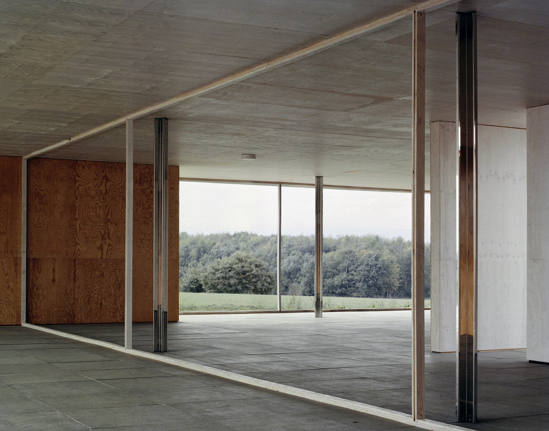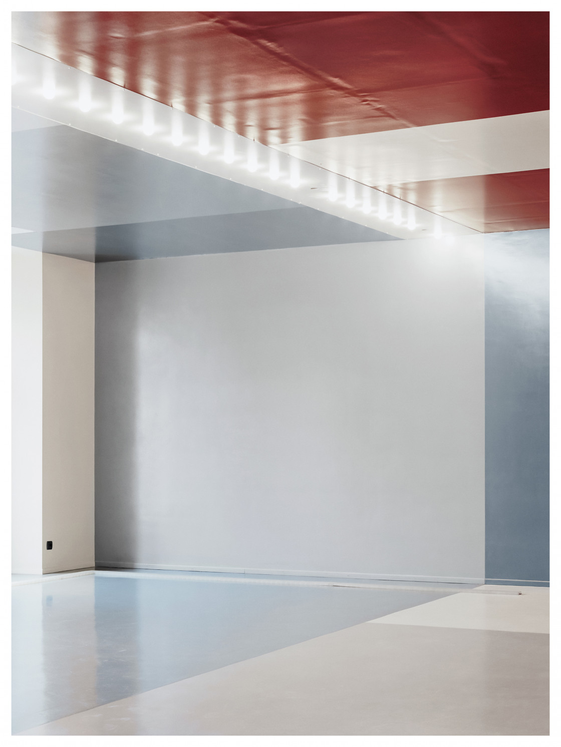 Die Konstruktion von Welten – seien diese größenwahnsinnig, futuristisch, utopisch, intim oder fragil – beschäftigt Stephanie Kloss bei ihren fotografischen Exkursionen durch die immer noch nicht abgeschlossene Geschichte der Moderne. Auch Theo van Doesburg steht für den Aufbruchsgeist der modernistischen Avantgarde. Gemeinsam mit Hans Arp und Sophie Taeuber-Arp schuf er 1928 das Dekor des Vergnügungskomplexes Aubette in Straßburg, dessen Foyer Stephanie Kloss 2013 fotografierte.Dieses Gesamtkunstwerk im Dienste des Lebens und seiner Verschönerung steht stellvertretend für van Doesburgs Forderung,den Menschen in die Malerei zu stellen, anstatt davor. Kloss dreht den Spieß um: Sie stellt den Menschen vor die Architektur, wie vor Malerei. Sie konfrontiert den Betrachter mit merkwürdig dimensionslosen Ausschnitten oder Versatzstücken von Gebäuden oder Räumen, wobei sich Maßstäbe und Proportionen in reduzierten, geometrischen und farblichen Kompositionen auflösen. Für Weltausstellung vereint sie dabei die unterschiedlichsten Motive: Kloss spannt den Bogen von modernistischer Architektur über brutalistische Betonbauten, wie der 1976 erbauten Wotrubakirche in Wien, bis hin zu Gebäuden der Jetztzeit. Dazu gehört die Piazza d’Italia, die nach einem Bild von de Chirico anlässlich der Weltausstellung in New Orleans realisiert wurde, oder der im Abriss befindliche, von Oswald Mathias Ungers entworfene IBA-87-Komplex in Berlin. In ihrer Modellhaftigkeit und Nüchternheit erscheinen
