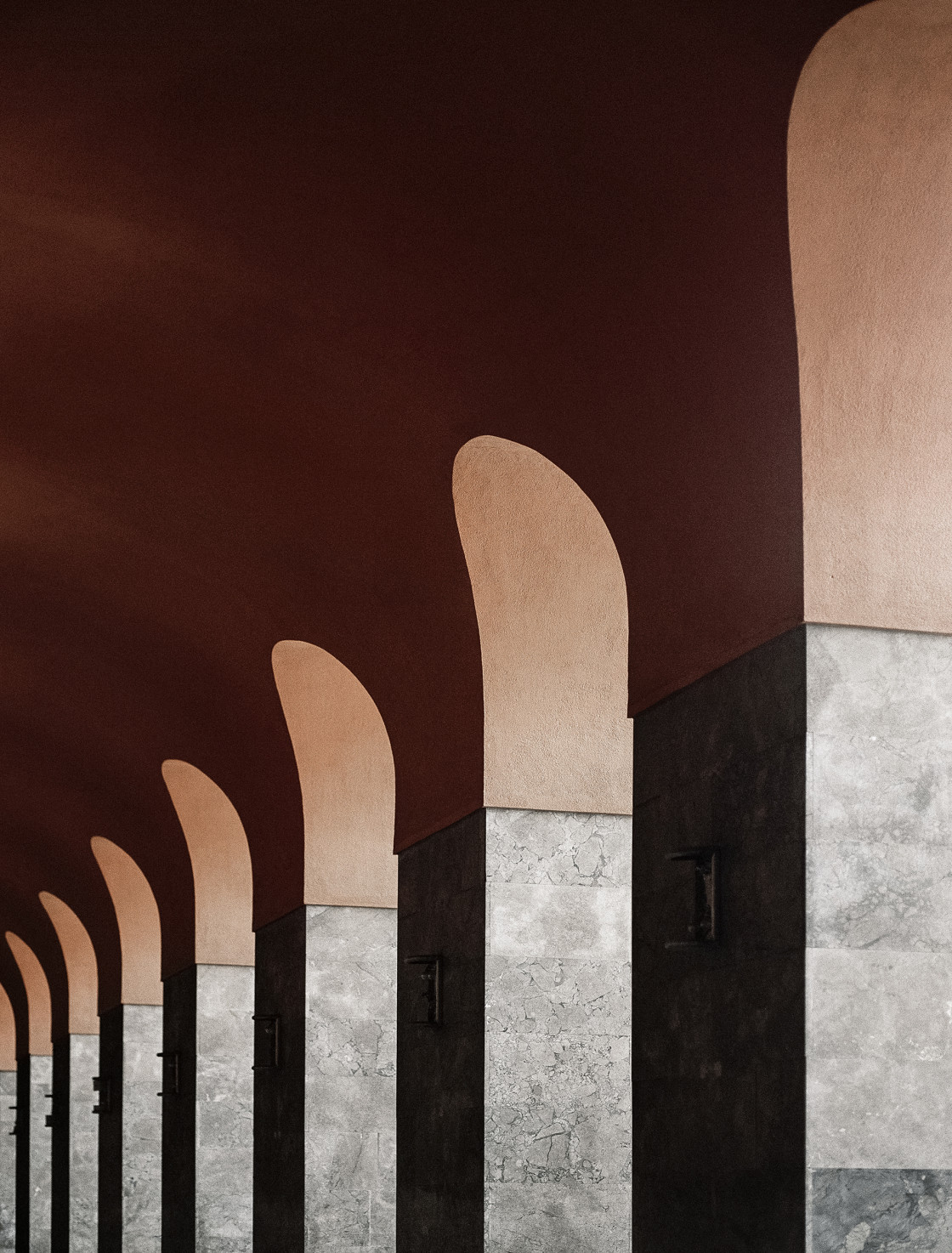 Kloss’ Bilder dabei fast surreal: Die menschenleere, verwitterte, abgenutzte oder konservierte Architektur wird zum abstrakten Skelett für modernistische Träume, Utopien und Ideale.