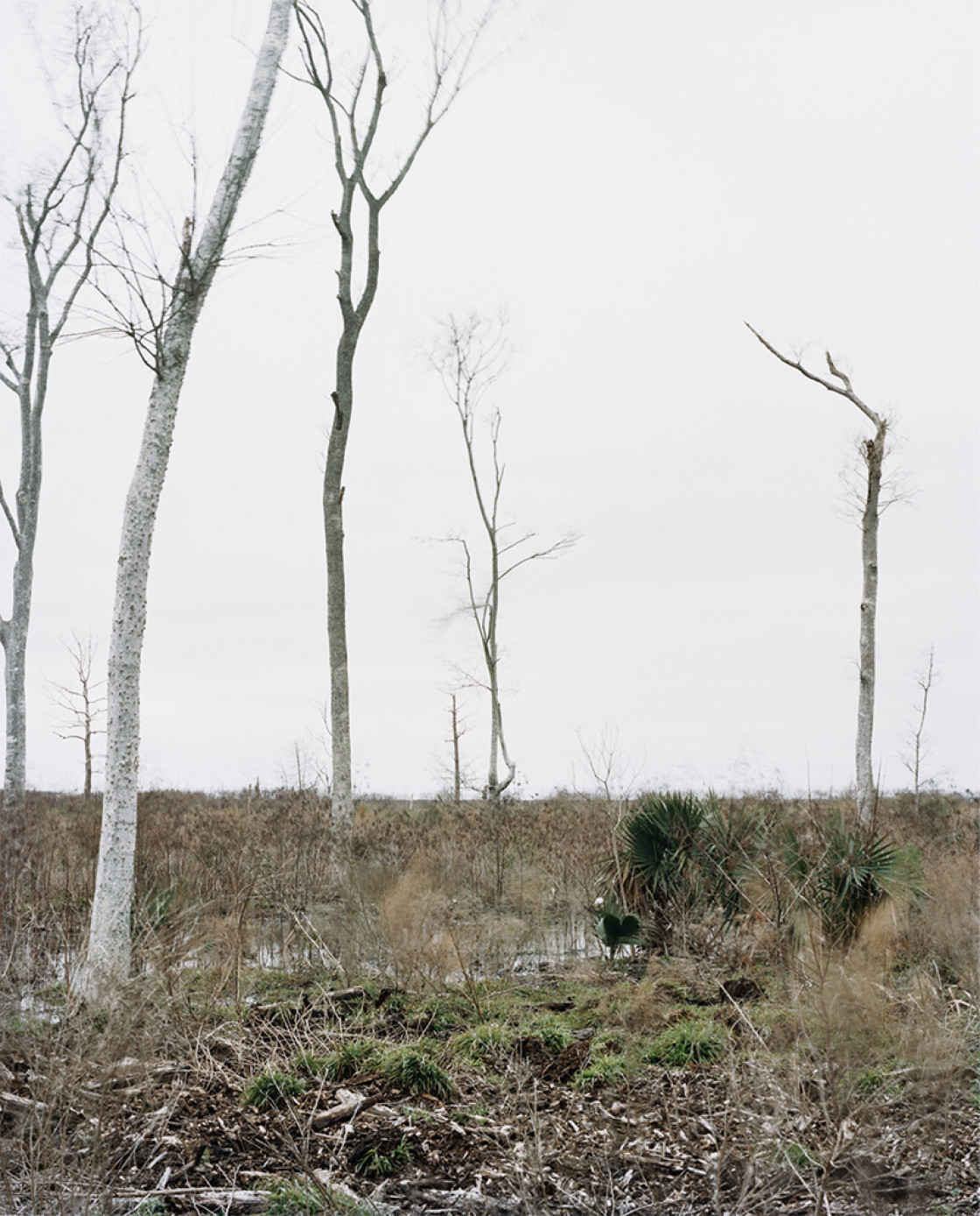 Das Gleiche gilt für Kloss’ aktuelle Bildserie. Die zeitlosen Momentaufnahmen aus dem Mississippi-Delta, die spontan erscheinen, sind – wie ihr gesamtes Werk – mit der Mittelformatkamera bereits während der Aufnahme bewusst komponiert. In der Arbeit mit dem Titel „Delta Horizon“, nun erstmals bei Semjon Contemporary in Berlin ausgestellt, nimmt sie diesen Faden auf und zeigt Details einer grandiosen Landschaft, die im nächsten Moment unbarmherzig und menschenfeindlich sein kann. Entstanden ist die Bildsequenz während eines Stipendiums am Seaside Institute in Florida Anfang 2010.